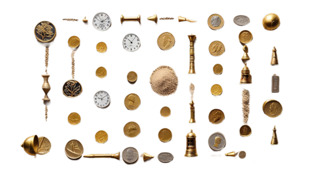 time clocks made sand money table coins business management coin investment finance productivity efficiency wealth savings strategy economic