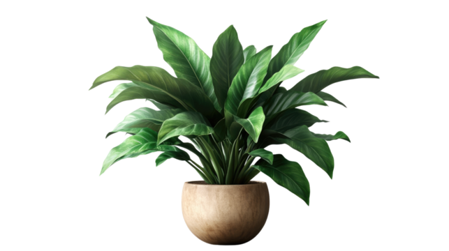 Plant in pot. Green plant isolated on white background. PNG file with transparent background also available. Cutout foliage in a stone plant pot.