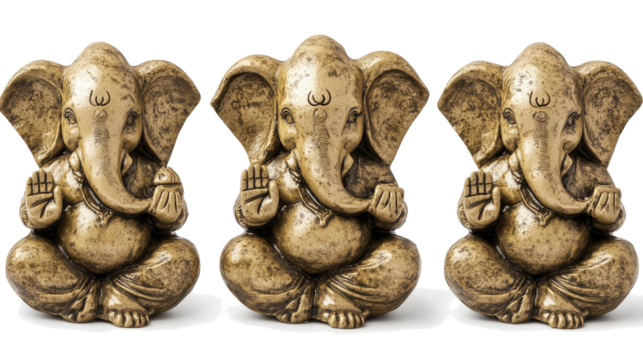Set of Three Indian Ganesh Figurines on Transparent Background Generative AI