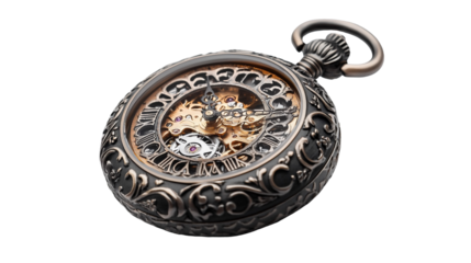 精密な歯車が見えるアンティーク懐中時計、時の歪み。generative ai