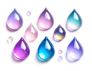 キラキラのオーロラカラーに輝く透明な雫型ジェルドロップの幻想アート ガラスの水滴 3Dレンダリング ジェネレーティブAI