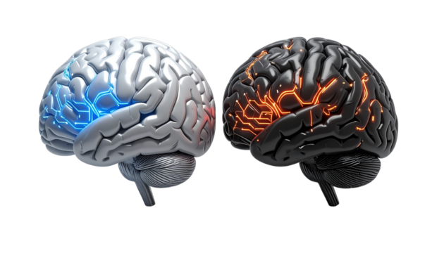 3D AI Brain with Circuits duo collection futuristic style isolated on transparent background