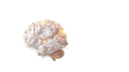Digital brain structure composed of glowing pink particles, symbolizing advanced technology, mind power, data processing, and innovation