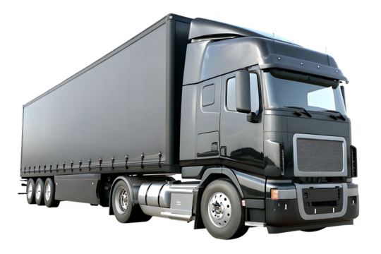 black semi truck  isolated on white background   ,AI GENERATED  PNG
