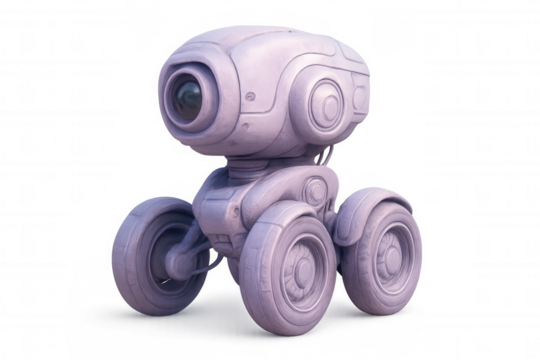 Robotic four-wheeled vehicle navigating alien terrain, representing technological advancement, isolated on transparent background