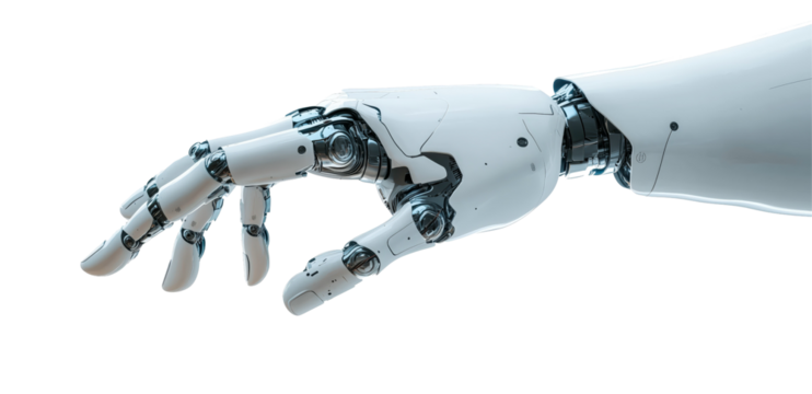 Robot hand pointing finger, indicating future technology, artificial intelligence, and digital interaction with transparent background