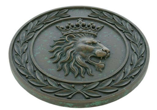 Classic fluted pillar with lion crest on transparent background sculpted in copper