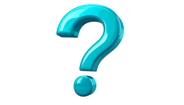 Collection of assorted three dimensional glossy question mark icons featuring various metallic and contrasting color accents on transparent background