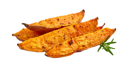 Baked sweet potato wedges with rosemary, transparent background