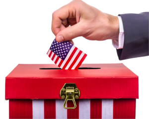 American general election concept. Person putting an American vote in ballot box on transparent background