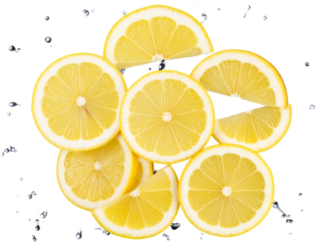 Sliced Lemon with Dynamic Water Splash – High-Speed Capture, Transparent Background