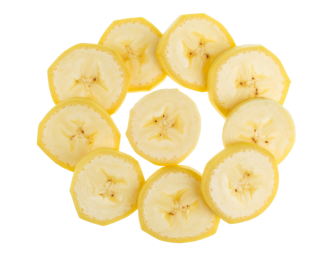 Banana Slices in Circular Arrangement, Top-Down View, Isolated