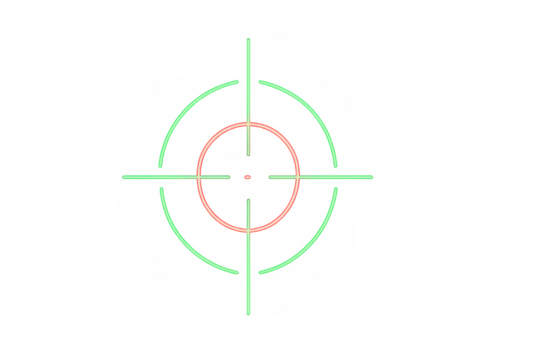 Green and yellow crosshairs with concentric circles, showing target aiming accuracy and focus on transparent background