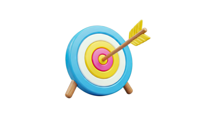 Arrow hitting bullseye on archery target with transparent background