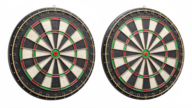 Two dartboards side by side isolated on transparent background