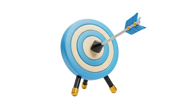 3D Render of a Purple Target with a Blue Arrow Hitting the Bullseye