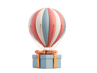 Hot air balloon and gift box 3d rendering on png