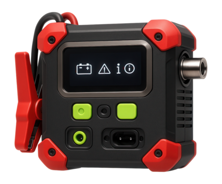 Heavy-duty jump starter with built-in air compressor and LED display for vehicle diagnostics