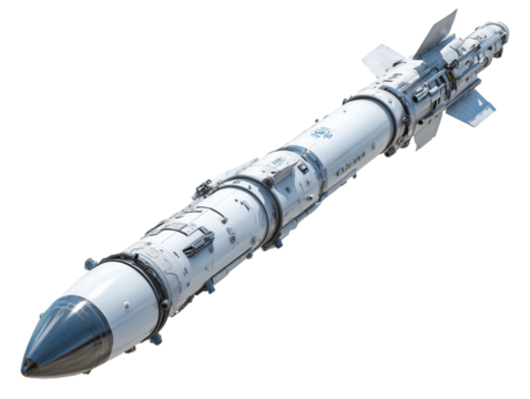 A group of missiles isolated on transparent background, ready to launch with fire and power for military defense
