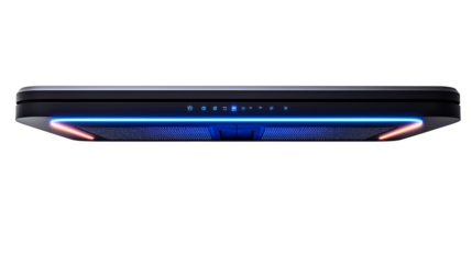 Futuristic smart kitchen hood featuring integrated holographic display and voice sensor