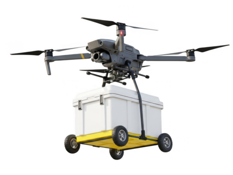 Modern drone carrying gift on transparent background for celebrations and delivery