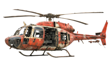 Red and black helicopter on transparent or white background