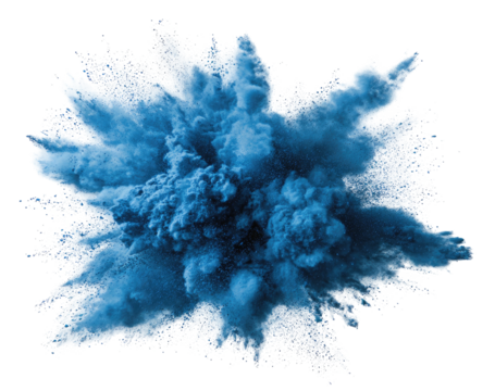 Explosive cloud of black smoke billowing dramatically against a white background.