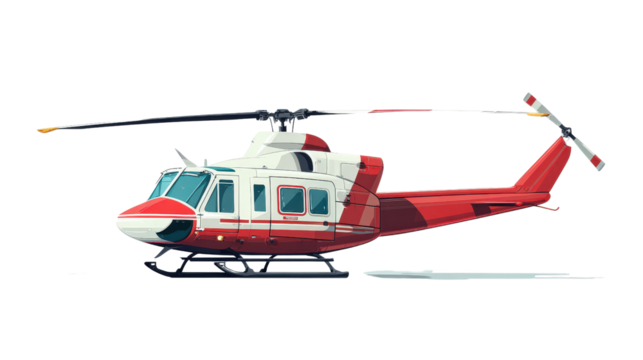 Minimalist flat vector illustration of helicopter background isolated on a Transparent background, PNG file.