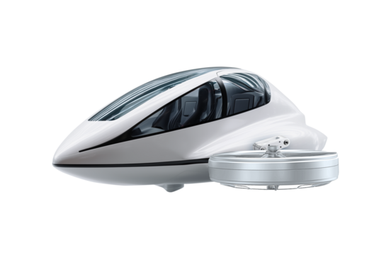 Foldable personal air vehicle prototype, background isolated on a Transparent background, PNG file.