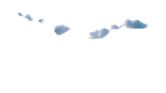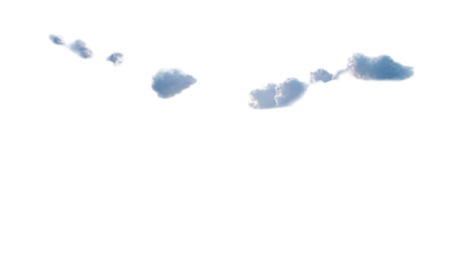 Scattered fluffy cloud fragments floating across sky formation with soft natural lighting isolated on white background