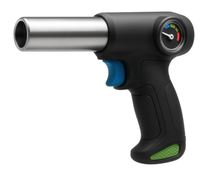 Professional metal spray gun isolated on white — ideal for industrial design, woodworking, automotive painting, coating tools, and DIY equipment visuals
