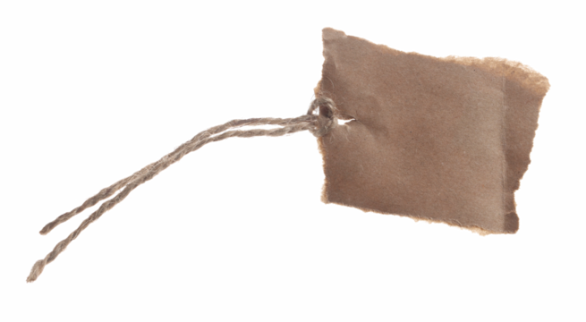 Blank cardboard tag with red string flying, isolated on white background, clipping path