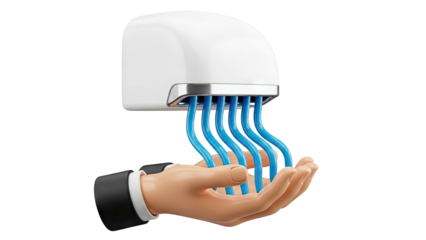 Hand Dryer with Blue Air Jets Drying a Hand