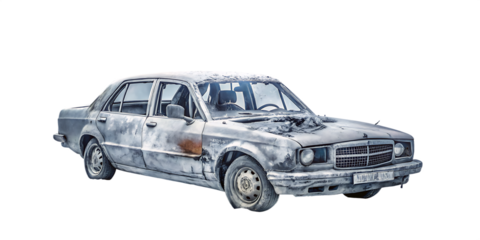 Rusty car isolated on white background as transparent, PNG