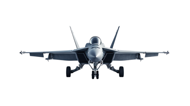 Fighter jet in action air force base cutout background clear sky front view military power