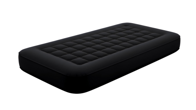 Black inflatable air mattress with quilted surface isolated on transparent background