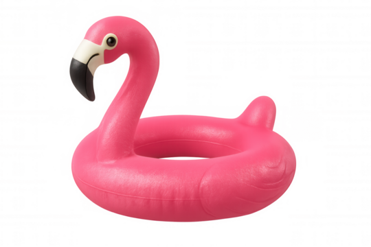 Pink inflatable flamingo ring floating on a transparent background, perfect for summer vacation and pool party themes
