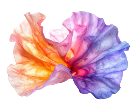 Delicate petals, translucent, vibrant color gradients blend, isolated