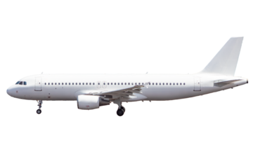 Real Commercial Airplane Airbus 320 on Transparent Background