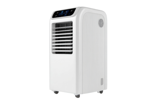 White air conditioner. Electricity home appliance. Cooling product for hot climate in summer.