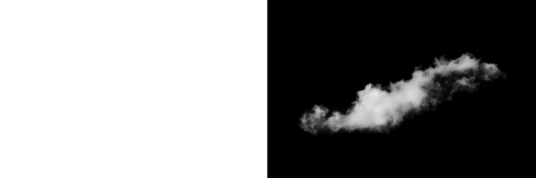 Narrow white cloud streak isolated on transparent background, thin drifting sky vapor trail with soft diffusion for atmospheric composition PNG