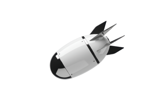 Isolated glossy warhead with metal fins, an aerodynamic weapon, rendering object