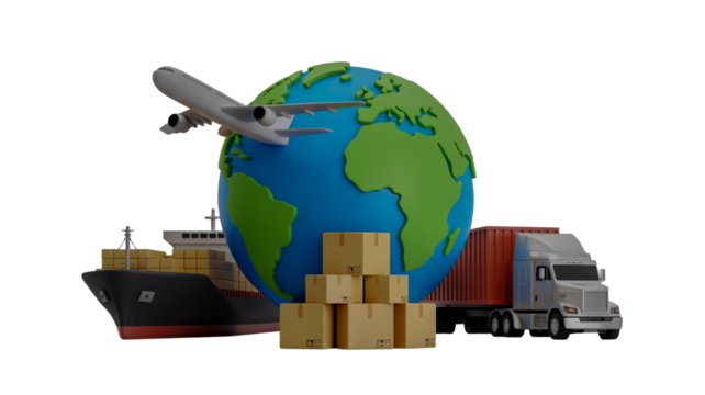 Global Shipping and Logistics with Airplane Ship Truck and Cargo Boxes air cargo airfreight