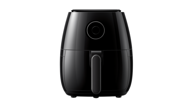 A modern air fryer device with a sleek design, used in kitchens to cook food using hot air, on a clean white background or transparent png