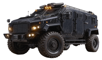 Armored personnel carrier vehicle, a robust and heavy-duty tactical transport truck, designed for military operations and secure troop movement.