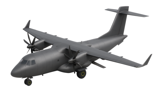 Military Transport Aircraft Side View Low Angle View of with Four Jet Engines and High-Wing Design for Tactical Airlift and Strategic Deployment Missions Isolated on a Transparent Background