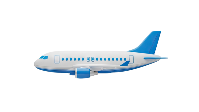 3D Modern jet airplane with blue accents isolated on white on transparent background