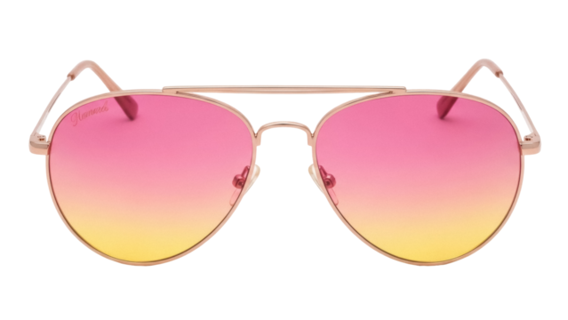 Stylish aviator sunglasses with pink and yellow gradient lenses isolated PNG, fashion accessory for sun protection and trendy summer look