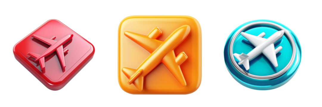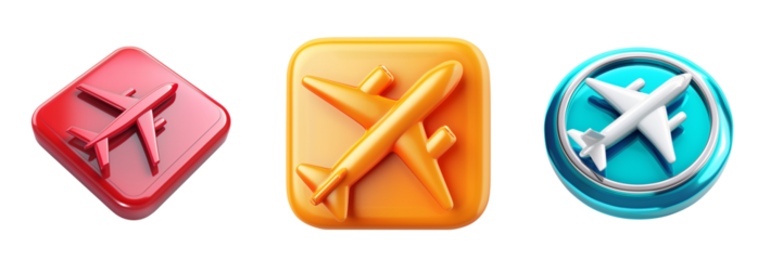 Aircraft Icon in 3D Plastic Style Isolated on White Background