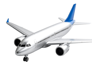 Iridescent 3d airplane flying, symbolizing futuristic travel, global connectivity, and modern transportation on transparent background